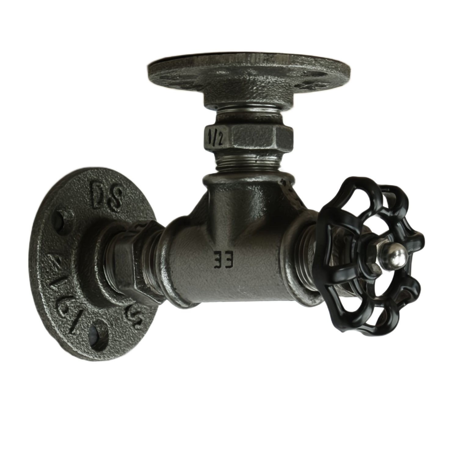 Este modelo inclui um volante metálico preto, uma verdadeira roda de válvula em ferro fundido pintada de preto, para um aspeto elegante e industrial.