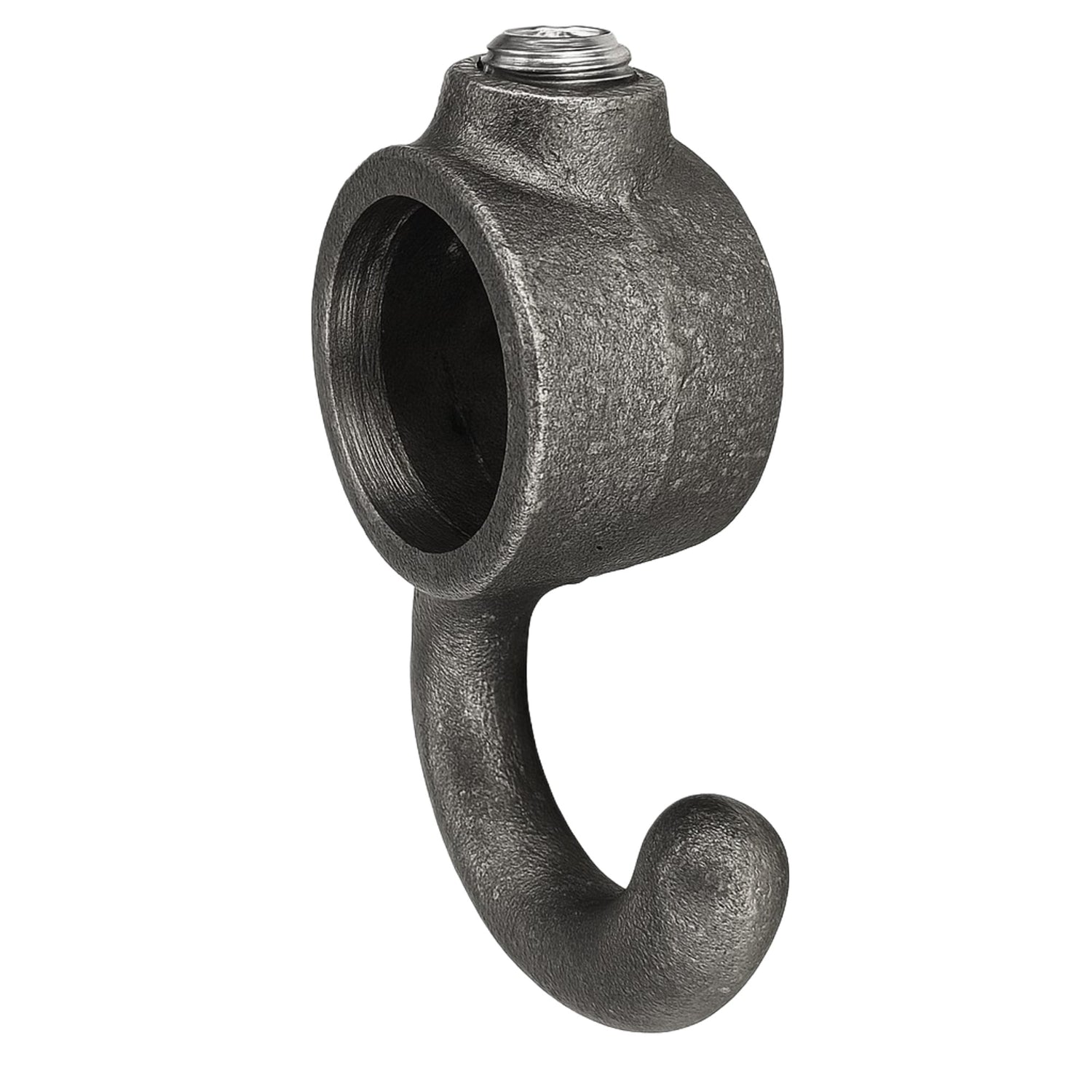 Este gancho em ferro fundido bruto combina resistência e um autêntico estilo industrial. Projetado para ser fixado diretamente num tubo roscado, permite pendurar ou suspender elementos decorativos mantendo um aspeto natural e robusto. O aperto com parafuso Allen garante uma fixação segura e discreta, ideal para criações personalizadas e espaços de estilo oficina.