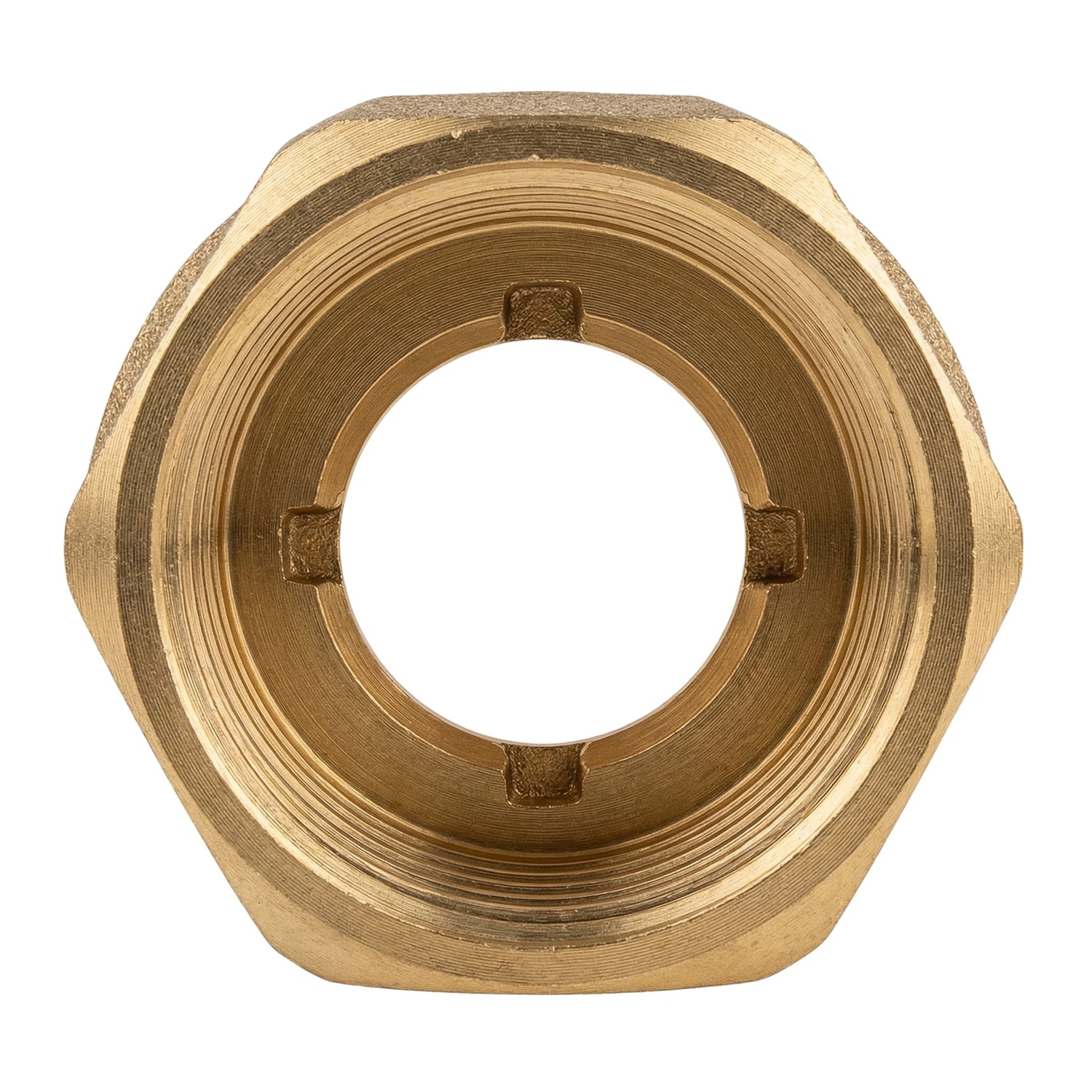 Luva de redução F/F em latão para enroscar para ligar dois tubos roscados macho de diâmetros diferentes. Os seus dois lados roscados internamente (fêmea) de tamanhos diferentes asseguram a transição entre duas secções de canalização. Norma ISO 228-1 BSPP.
