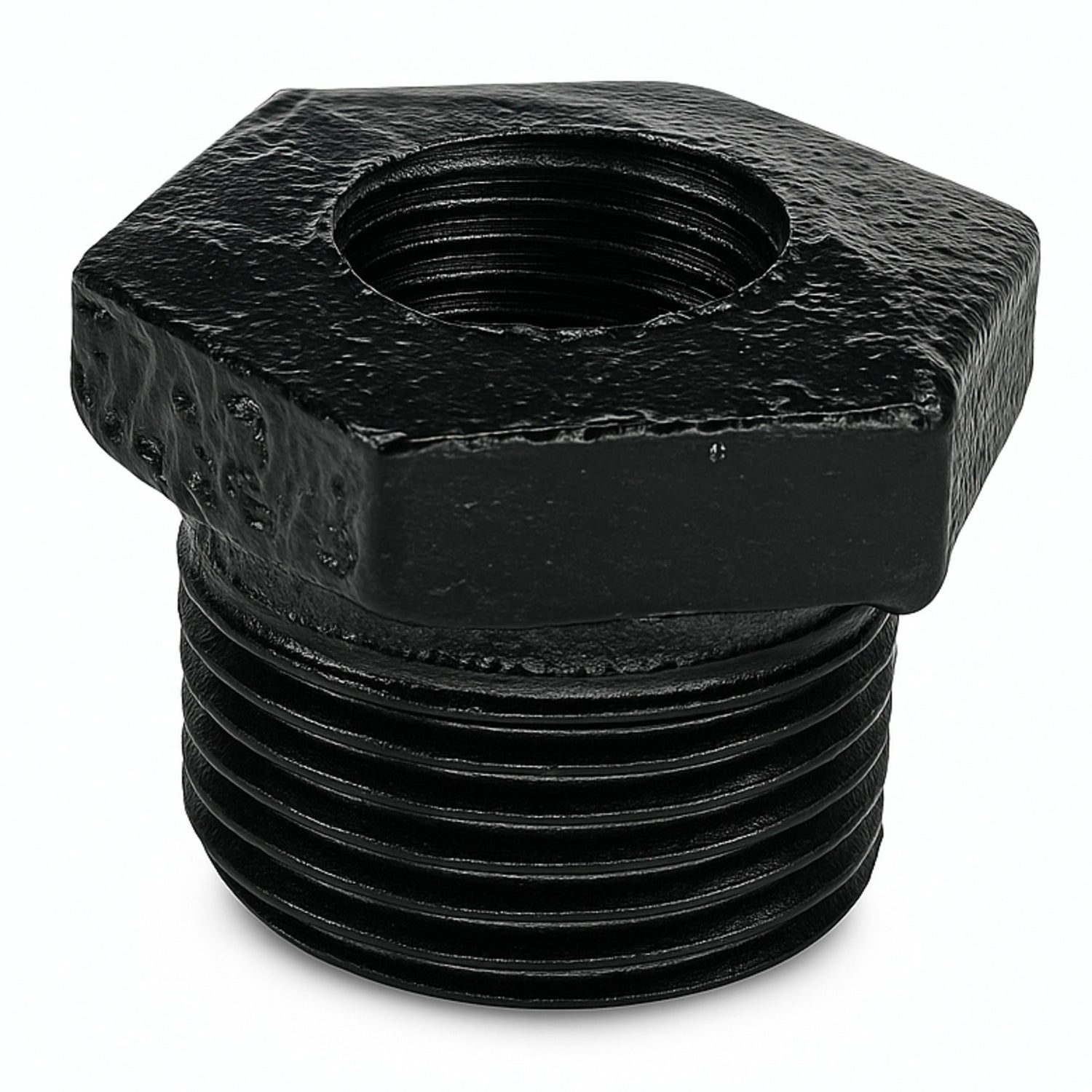 Esta redução M/F pintada de preto liga dois elementos roscados de diâmetros diferentes em projetos decorativos de estilo industrial. Com a sua rosca macho/fêmea, encaixa facilmente sem necessidade de porcas ou uniões adicionais. Destina-se apenas a fins estéticos e não é adequada para canalizações sob pressão.