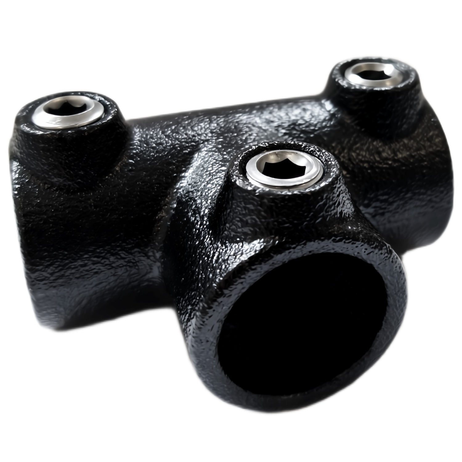 O conector em T com parafuso BTR com acabamento preto permite unir três tubos perpendiculares em estruturas decorativas de estilo industrial. O sistema de aperto com chave Allen assegura uma fixação sólida e discreta, sem necessidade de roscas nem soldadura. Este T é ideal para criar estruturas metálicas complexas, mantendo uma aparência simples e moderna.